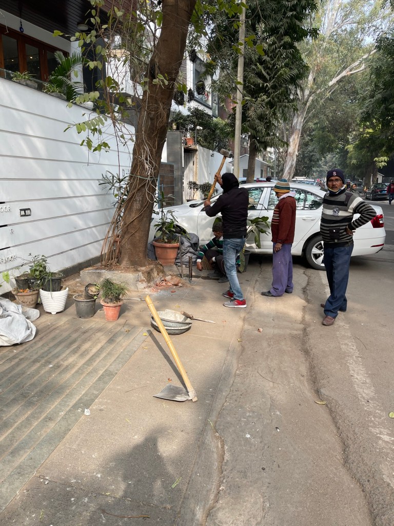 One thing I have recently lost though is the lovely big bushy tree that was out front of the building. A couple weeks back I went out to find a group of guys digging up the concrete around its base, and I was told in broken English/Hindi mix that the tree was not getting water so they were digging to help this.